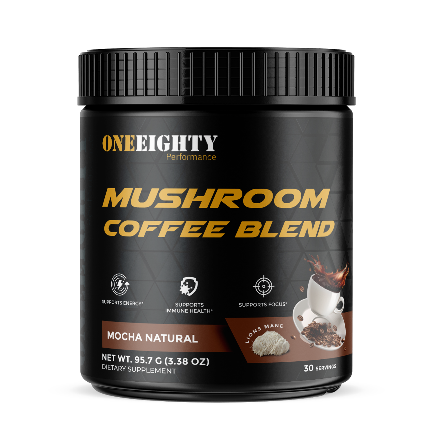 Espresso Coffee, Cocoa Powder, Organic Mushroom Blend (Chaga, Lion's Mane, Cordyceps, Turkey Tail), Natural Flavors, Himalayan Pink Sea Salt.